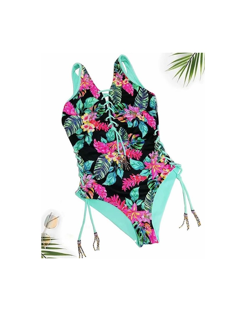 Precioso bañador reversible por un lado estampado y por el otro liso básico