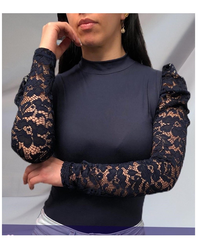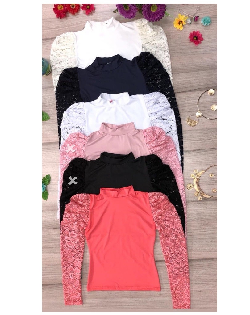 Hermosa blusa con manga globo estilo princesa encaje (blonda) que le da el toque femenino y delicado