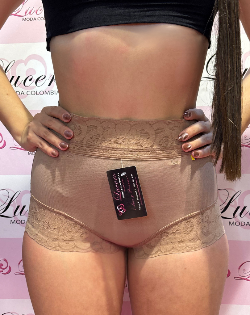 Pretina en cintura con encaje de 6 cm de ancho para que te de firmeza, además en la parte interna cuenta con dos filas de silicona para que se adhiera a tu piel y 4 varillas para que se quede firme.