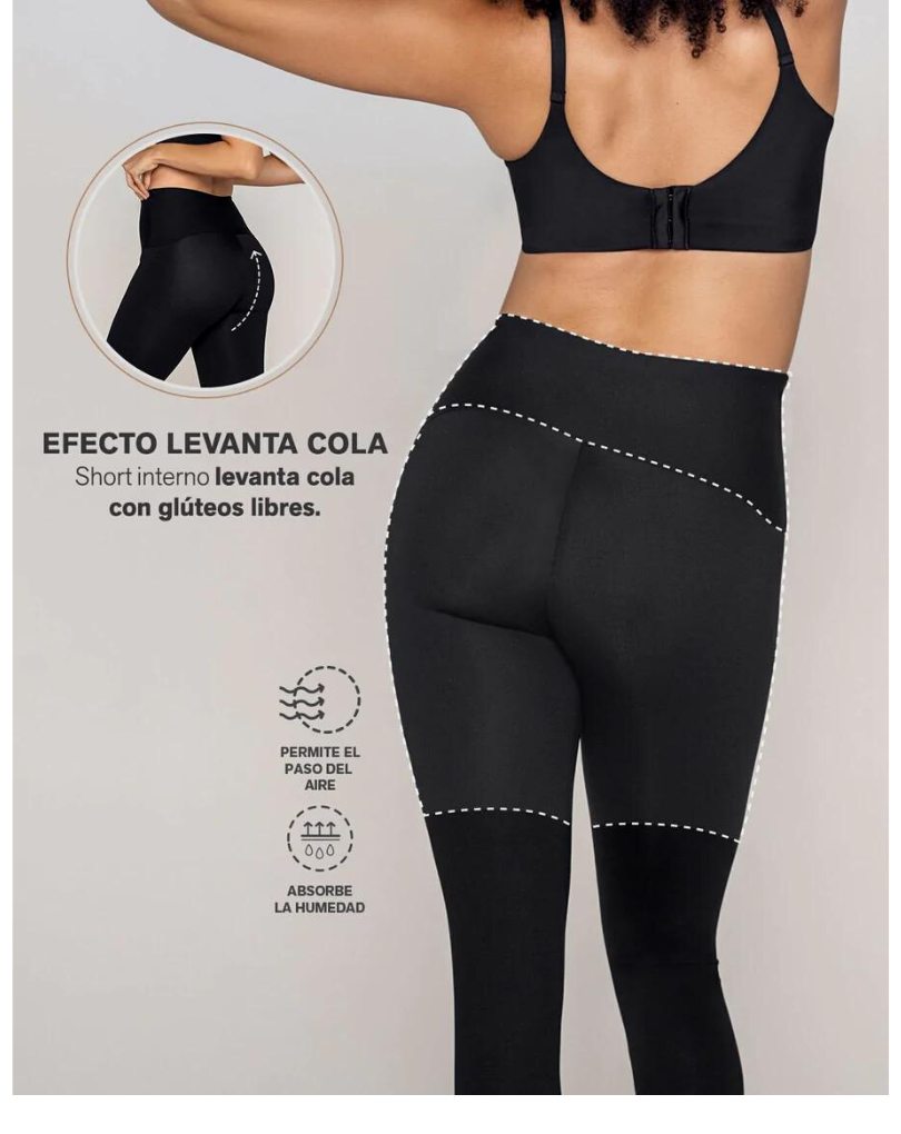• Legging de compresión en abdomen, cadera y piernas + short interno levanta glúteos.