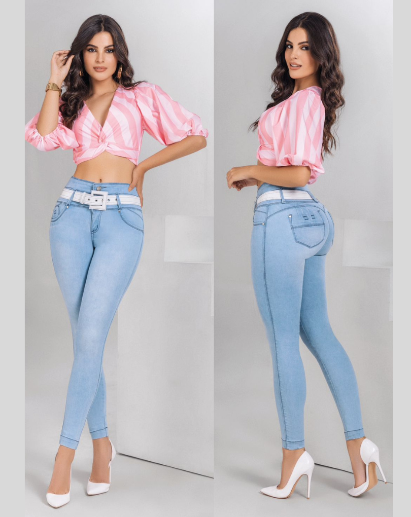 2. Comodidad y Estilo Fusionados: La fusión perfecta entre comodidad y estilo define al jean claro “Sussy”. Su tiro alto y diseño push-up no solo realzan la figura, sino que también proporcionan una experiencia de uso cómoda y favorecedora. En consecuencia, este jean se convierte en la elección ideal para aquellos que buscan una prenda que combine a la perfección moda y bienestar.