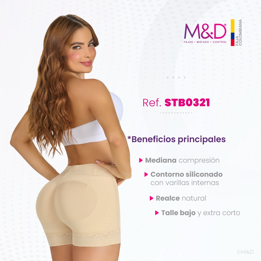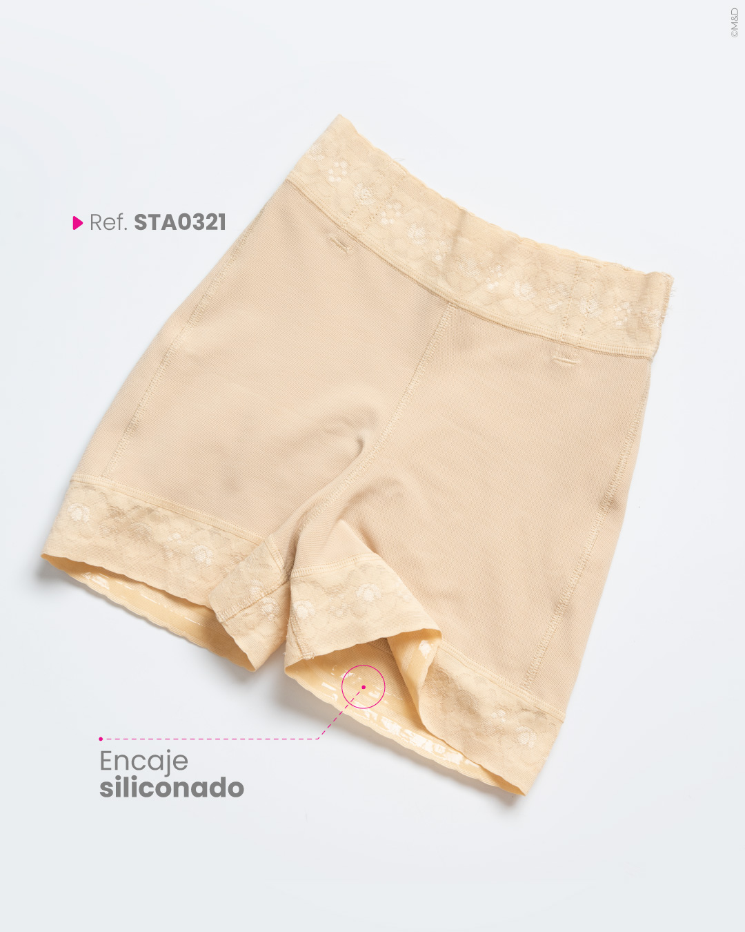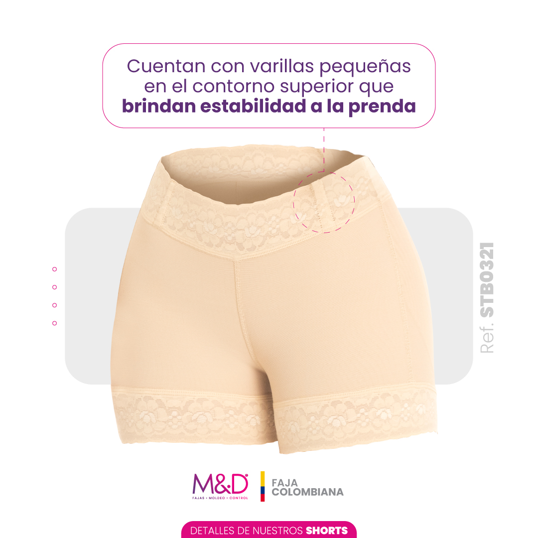 SHORT CORTO LEVANTACOLA Los insumos de la prenda en color beige contienen Vitamina E que favorece la cicatrización, suavidad y elasticidad de la piel.