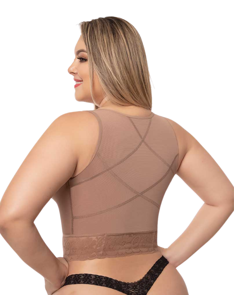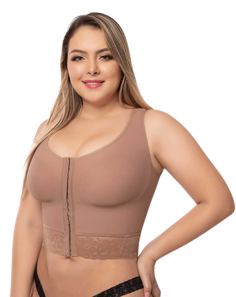 Comodidad y Soporte Posquirúrgico: Nuestro brasier top posquirúrgico de tiras anchas es perfecto para la recuperación, brindando comodidad y soporte necesarios.