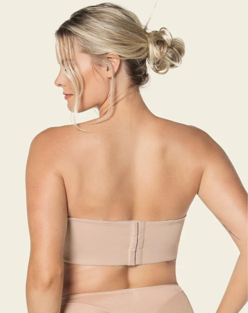 • Sujetador sin tirantes de espalda ancha con aros internos.